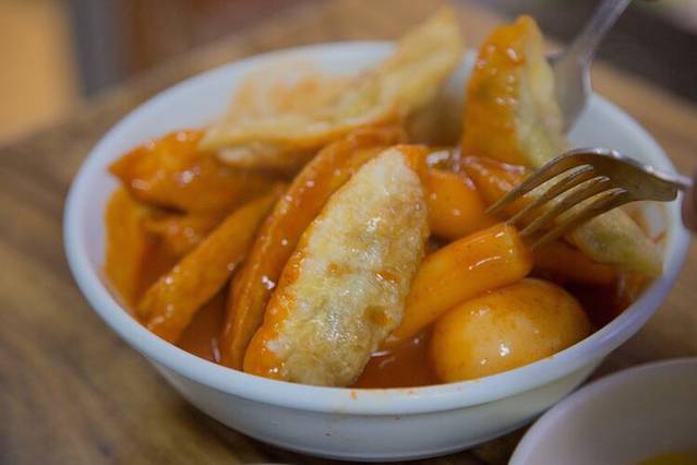 里面有鸡蛋,韩国年糕,饺子类似物,反正我都叫不出来,刚入口的时候口感很好,接着辣味就开始蔓延,越来越辣,但是味道一级棒!强烈推荐!!一定要来。
