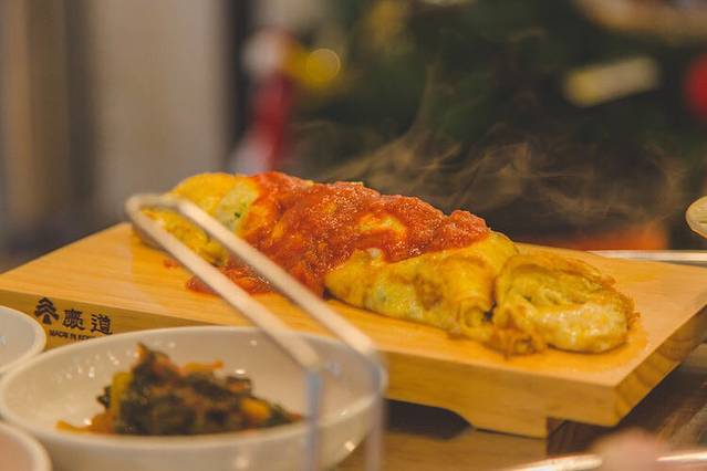 韩国的鸡蛋卷,番茄酱是大厨亲手用番茄熬出来的。