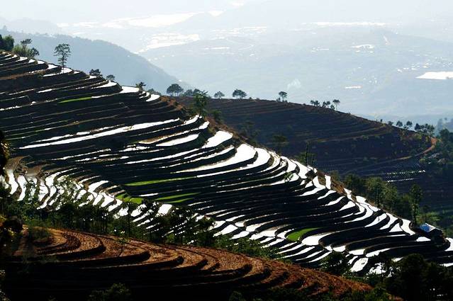 阳春三月,山花烂漫,春意盎然,万物生机勃发,是燥动的季节。在这布谷鸟啼鸣声中,杜鹃花盛开的日子里。米易县新山僳傈族乡,举办传统的“约德节”。邀请我们米易县迷昜山水徒步协会参加,大家高兴踊跃报名参加,因为“约德节”在僳傈语中就是男女青年约会的意思,也就是僳傈族的情人节。特别是僳傈族的姑娘婉顺漂亮,能歌善舞,聪慧能干。僳傈族在我国主要分布在四川,云南。傈僳族(英文名称Lisu Li-Su Lisaw)中国少数民族之一,发源于青康藏高原北部,是中国、缅甸、印度和泰国的一个跨国性质的少数民族。傈僳族民间文学丰富多彩。《创世纪》、《我们的祖先》等神话、传说,是研究傈僳族远古历史的宝贵资料,也是中国民间文学宝库中的珍品。其诗歌比较讲究韵律节奏和整齐仗。在一些双关语的诗句中,常巧妙地包含着意境清新的隐喻,这是傈僳族诗歌最突出的特点。傈僳族主要从事农业。其婚姻是一夫一妻制。傈僳族的服饰很有特点,妇女穿绣花上衣,麻布裙,喜欢戴红白料珠、珊瑚、贝壳等饰物;男子穿短衣,外着麻布大褂,左腰佩刀,右腰挂箭包,傈僳族能歌善舞,每到收获,结婚。出猎和盖房等时节,他们都要尽情地歌舞。傈僳族相信万物有灵,崇拜祖先。喜爱打猎。传统节日有阔什节(过年)、刀杆节、收获节、约德节等。傈僳族非常喜爱唱歌对调,有“盐,不吃不行;歌,不唱不得”之说。民歌朴素感人,曲调丰富,传统舞蹈多为集体舞,有模仿动物的,也有表现生产生活的。传统乐器有琵琶、口弦、四弦和芦笙等。而且特有的活动,“上刀山”,“下火海”,“上刀山”,把32把磨得锋利的长刀,横绑在两根高四丈的粗栗木杆上成梯子形,顶端有红旗、鞭炮,在一片鞭炮锣鼓声中开始表演。“下火海”,用木柴烧成一大堆火炭,表演开始,五个人赤脚围着火炭跳出跳进,然后“打火滚”,即在火炭上翻滚;最后把在火炭里烧烫了的铁链子拿在手里传来传去,叫“拉火链”,表演完毕群众一起跳舞。在路上,一处处美丽梯田吸引着我们的目光,僳傈族人民勤劳聪慧,顺应自然,巧妙地利用山势,地形开出了一片片田地。到达僳傈族新山乡会场所在地,到处洋溢着欢乐的笑容,漂荡着动听的音乐,山歌,僳傈族姑娘,小伙穿着节日的盛装,展示着青春的活力,僳僳族姑娘用灵巧的双手织布,纺线,展示她们的精湛技艺,产品。在悠扬的葫芦丝,树叶声中,“约德节”,开幕了。一个个精彩的节目让观众们掌声不断,惊叹不己,因为这些演员全部是僳僳族群众,没有一个专业演员。完全是一场原生态演出,朴实无华,精彩绝伦,情歌对唱,树叶传情,葫芦丝恋歌,扁担神舞,杜鹃鸟舞,田间劳动再现的锅庒舞。让我们感受到僳傈族人的激情,朴素,对大自然的热爱,崇尚自然,回归自然,顺应自然的朴质感情。最后的压轴戏把活动掀起高潮,即上刀山,下火海,赤脚登上三十二把利刃的刀山在顶上把糖果,荷包,彩包抛向观众,掀起一阵阵浪潮,欢笑声,下火海,更是让人惊讶无比,嘴咬烧红的铁链,手拿烧红的铁犁,脚踏烧红的钢板,赤脚在炭火里跳跃,走动,让观众一阵阵惊心动魄,尖叫声不断。让我们倍感幸运的是以前只在电视里,电影里看过的精彩表演今天亲眼所见,大家激动不已,叫好声不断。在惊魂动魄中表演结束了。演出完毕,乡政府请我们吃了一场原生态的坝坝宴,包谷面饭,煮土豆,干酸菜汤,土鸡蛋,凉拌土鸡,原生态农家腊肉。自酿的农家粮食酒,就摆在地面上,坐的是草甸登子。大家食欲大开,吃的津津有味,因为太香了,都是原生态食品。大家酒饱饭足,开心不已。饭后,我们踏上新的旅途,登山赏杜鹃花,满山遍野的杜鹃花点缀着一座座山头,白色,淡黄色,紫红色,等等,和各种山花一起争奇斗艳,只听见快门声不断,姑娘们像蜜蜂似的花间穿梭,男人们忙着看花,看姑娘,目不暇接,摄影爱好者长枪短炮不停地拍照,寂静的山谷,因我们的打扰,喧闹不己,美丽的鸟儿,松鼠因不满我们的打扰,悄无声息地躲起来了,在欢乐中,时间总是过的很快地,不知不觉中,夜幕悄然降临,在松林中,我们搭起帐篷,以地为床,以天为房,看着从树林透露的月光,数着星星入眠。半夜不期而至春雨淅沥下个不停,让我们晨起看日岀的愿望成为一场梦。但是,失之东隅,收之桑榆,雨后,一场滚滚而来的云海让我们大饱眼福。翻腾不息云海变幻莫测,在山中不停地荡漾,翻腾,大自然的魅力无穷,让我们欣赏到一场视角的盛宴,很快浓雾将我们淹没。我们也踏上了归途,到了山下,阳光明睸,让我们领教了山区十里不同天性格,在欢快的歌声中,结束了这次快乐之旅。