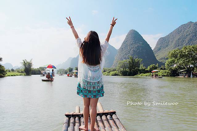 虽说错过了漓江漂流,遇龙河漂流也是必来的,风景真的很赞,就这么漂啊漂啊觉得特别惬意,生活在高楼林立的大城市有时候特别向往这样的生活~