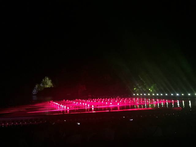 印象刘三姐是世界上最大的山水实景剧场,坐落在漓江与田家河交汇处,与闻名遐迩的阳朔书童山隔水相望,既强调艺术的表现,也高度重视环境保护,整个工程与大自然融为一体。