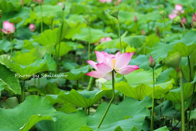 别看这向日葵那么美,其实是剪下来接在竹竿上的,而且整个荷花池就大概3-4朵