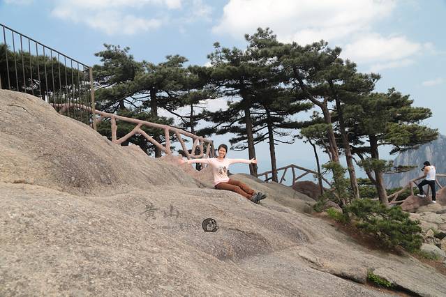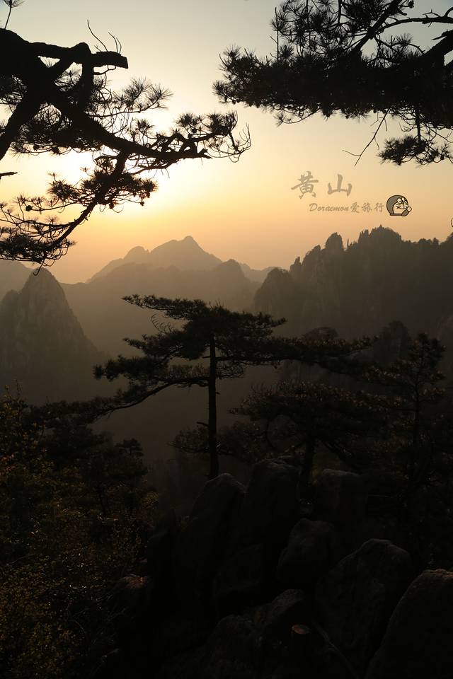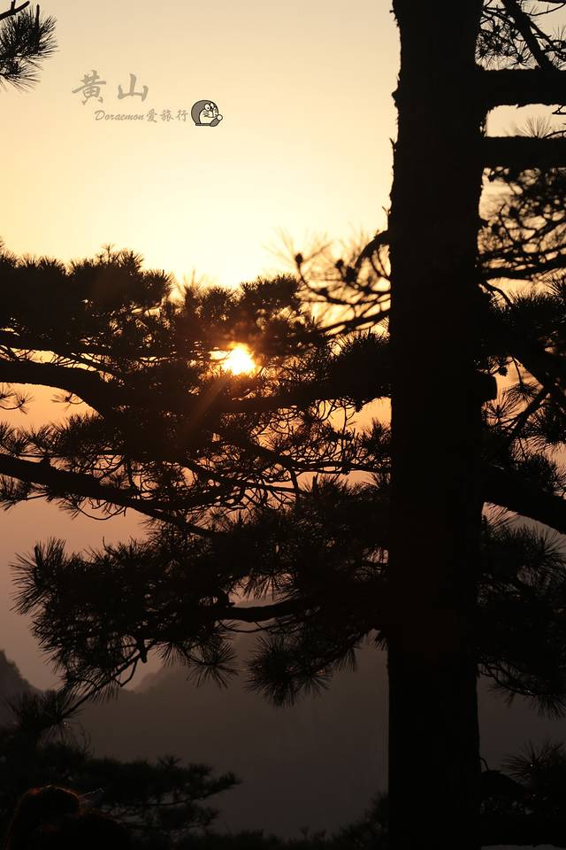 在黄山看日出,一定要早起喔,不然好位置都被占据。由于我住在北海宾馆,宾馆斜对面的路通往狮子峰,步行至峰顶大概20分。四点钟左右摸黑爬上峰顶,一定要带上手电筒或头灯,山路比较黑。由下至上狮子峰有三个地方可以看日出,分别是清凉台、猴子观月和峰顶;越往上爬,人相对少一些,景观也开阔些。峰顶旁边有一条小路,位置较平缓,有松树的衬托,可以拍出具有黄山特点日出。