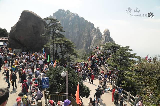 迎客松附近的游人,快挤满空地了!我们果断撤退了