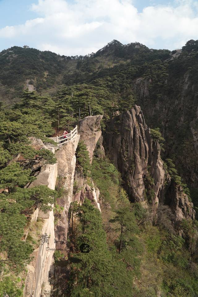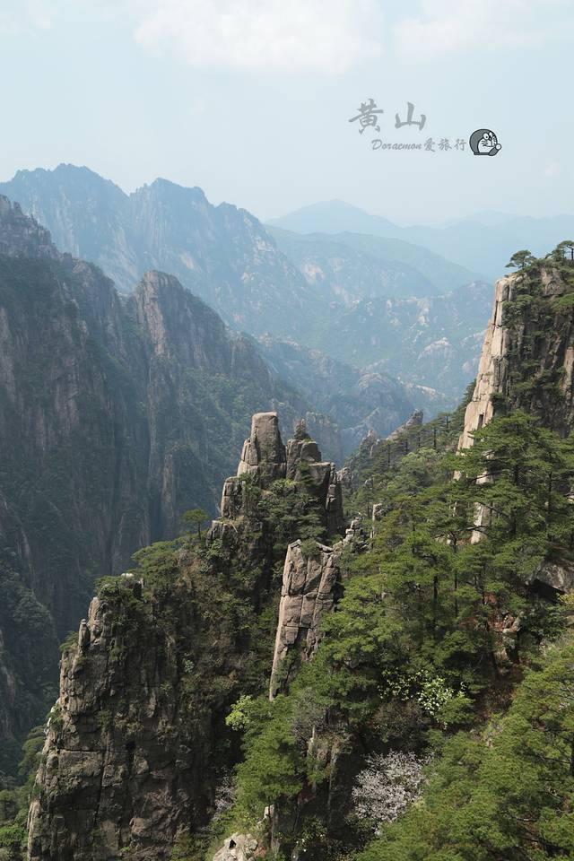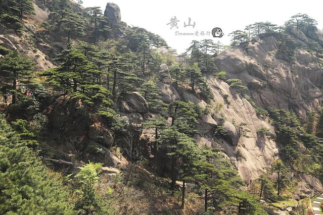 我们选择从后山上,到达售票口只有零星的几堆人,很快买好门票和缆车票上山了(沿途的风景没有山上的壮观,为了保留体力,我们选择乘缆车)!无需排队等候,畅通无阻地坐上缆车,7:30左右到达了白鹅岭。当大家刚从美梦中苏醒洗漱整理中、或还在赶往景区的路上、抑或在售票、缆车处面对游客大军拥堵着,我们开始欣赏黄山的秀丽、山体峻峭,遇上看日出后逆向的人流。后山的人并不多,登上始信峰、远眺猴子观海、梦笔生花、笔架峰,达到晚上入住的北海宾馆。卸下行李,轻装往西海大峡谷。
