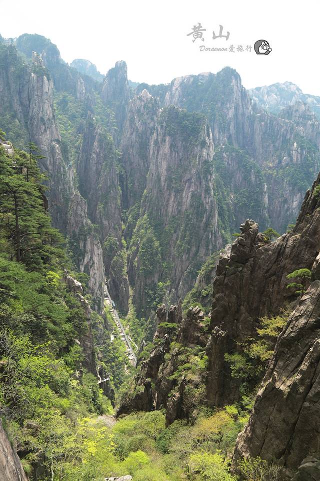 由于黄山海拔高一些,五一左右刚好万物发芽的时候,当周边的地方踏上初夏的脚步,这里仍然感受到春天的气息。深藏在后山嫩绿,嗅出春天的味道,植物发芽、翠绿的一片,似乎忘记身在黄山。