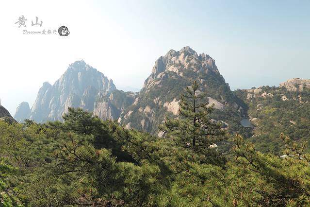 晨光下从光明顶远眺的鳌鱼峰、莲花峰,与昨日下午的景色、光照不同了