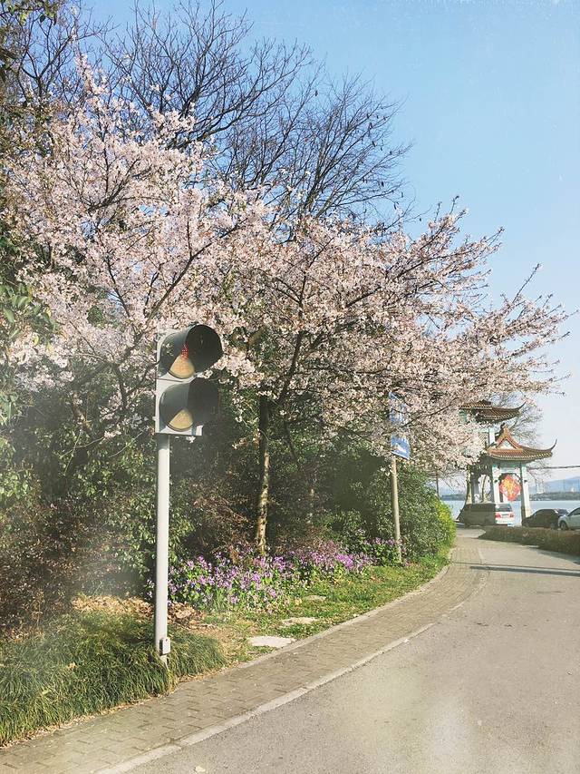 被我们发现一处好美的景色,若隐若现的樱花树~