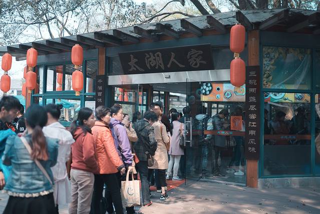 我们的午饭太湖人家,是专门吃小吃的一家店,靠近游船码头那里,天气好可以在外面就餐,一边欣赏美景一边用餐。