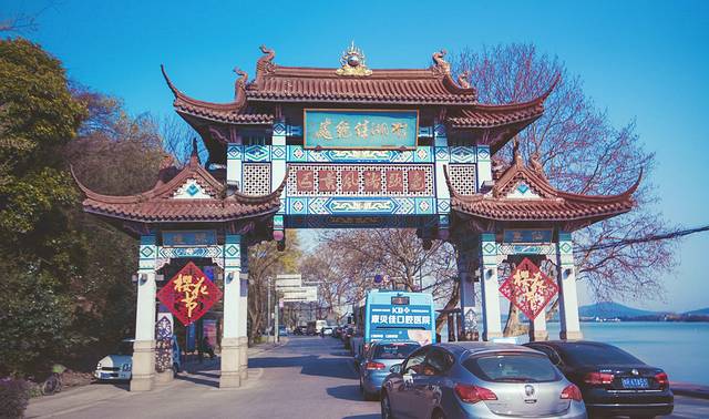 我们8点多打车从酒店到鼋头渚的时候往里面开的私家车和旅游大巴已经开始排起队来了~~~~~我们是在这门口下车然后步行大概15分钟走到景区卖票点。