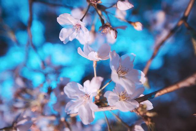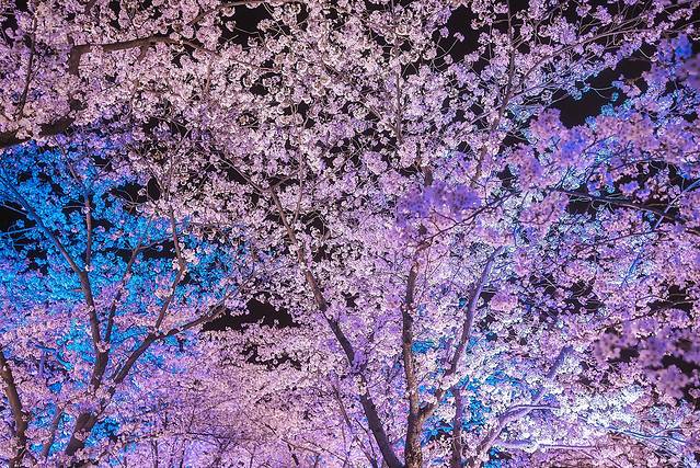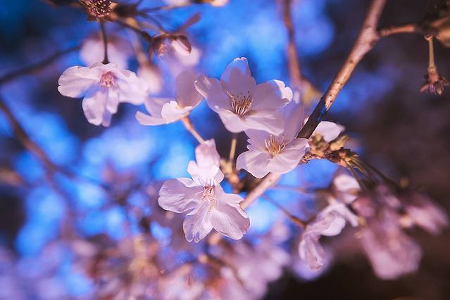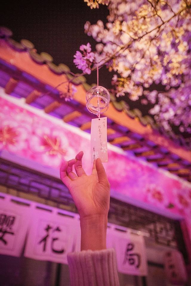 此时的天色已经越来越暗,渐进佳色,是赏夜樱的最好时光!