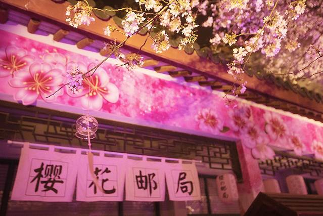 夜晚的樱花邮局