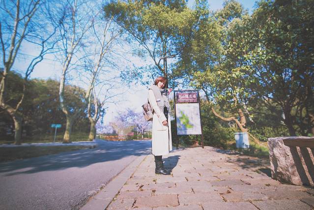 路口的几株樱花树,后面的空地等到下午的时候已经变成了停车场,里面停满了车~~里面还有一颗很大的树,我后面拍的人像照片就是从这里走进去。