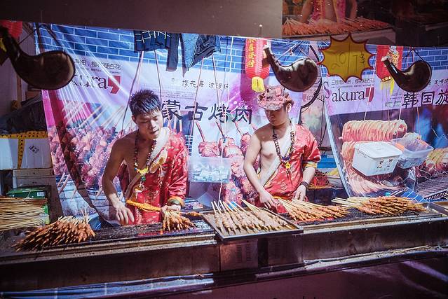 随着音乐边烤羊肉串边起舞的小伙子~~不仅烤的起劲跳的也很起劲~~哈哈