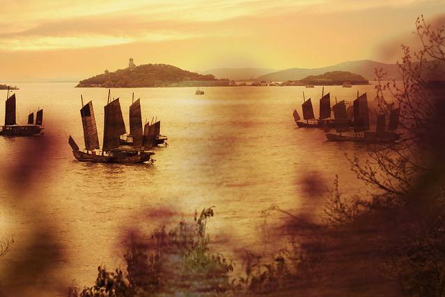 吃完晚饭,从广福寺下来就可以看见傍晚的渔舟唱晚~~