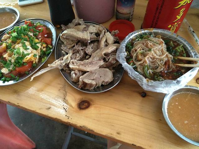 第一餐,在冯小刚影视基地。水煮肉片+酸辣土豆丝,云南胃表示,还不错。