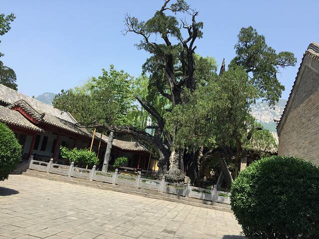 开车没走高速,结果原本两个小时左右的路程走了四个多小时,郑州市里的路太绕走错了好几个路口......最后走了郑登快速路七点多到达登封市,我在手机上现找了一个离景区很近的快捷酒店尚客优,正巧赶上这家店房东孩子结婚闹到11点才消停,第二天早上起来拉开窗帘才发现我们住在嵩阳书院景区的山脚下,心情立马和昨天来了个反转,我们在网上买的三联票,少林景区,嵩山景区和中岳庙景区外带瀑布还有什么山的,总之很多的景点一天肯定游不完,当天气温很热37度,而且水都干了河底水泥地都干了!