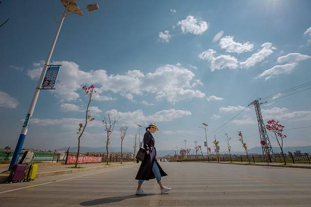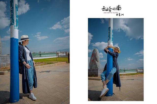 到达喜洲,蓝天,阳光无限好,在等酒店接送的镇口,自恋了