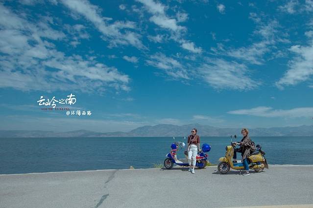 放下行李之后,我们又去租了两辆电瓶车,环另一半海,终点设为小普陀