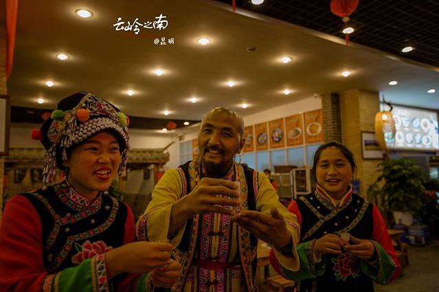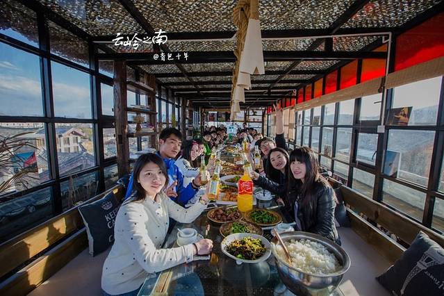 不过酒店附近吃的还是蛮方便的,出来很多店面,我们就随便进了一家云南土菜馆,虽然菜不怎么好吃,但是服务还行,上菜时还表演一段舞蹈,每桌都要来唱一段祝酒歌
