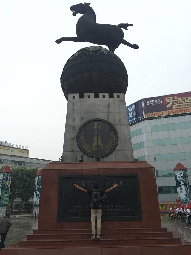 玉林的地标,刚好碰上一队大妈骑着电动车出来旅游(右下角)我们一起拍照还把隔壁的保安小哥吸引过来了