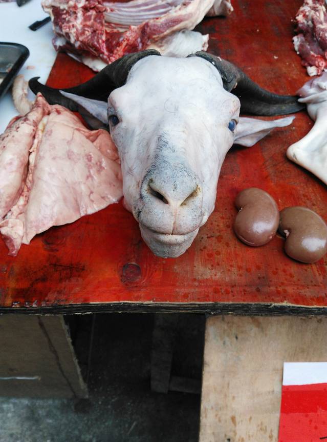 市场的羊头,想起一个成语“挂羊头卖狗肉”