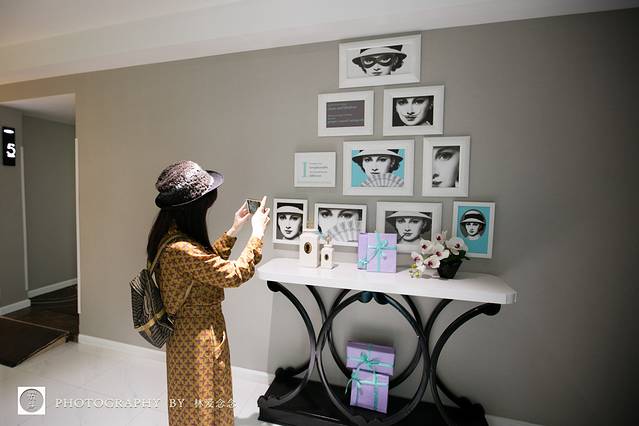 酒店走道里的摆设,大多是我们心中共同的女神奥黛丽·赫本有关,上世纪60年代,她主演的《蒂凡尼的早餐》(Breakfast at Tiffany's),从片名到主角的造型都充满了经典品牌的印记。