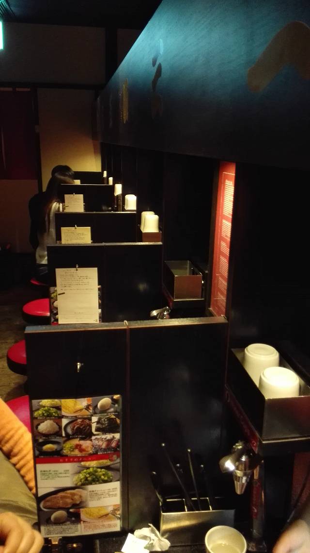 吃这个要先在贩卖机上买好票子。。再去吃。。一人一个隔断。