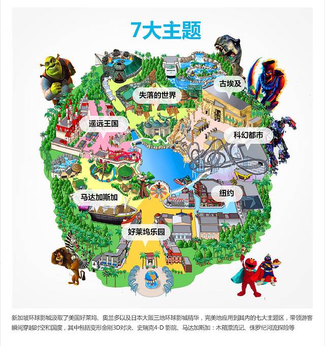 主要景点包含:环球影城,SEA海洋馆,海豚园,水上探险乐园,特丽爱3D美术馆。