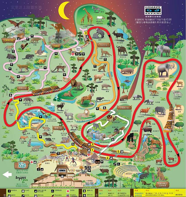 夜间动物园 大门 因为是夜晚游览就没照相,这里面分为坐小火车和步行,坐小火车大概1个小时吧,围着园区走一圈,黑乎乎的,时不时的有动物在边上吃东西,当然了食肉的动物还是有沟隔着的。然后下了车可以选择去看表演,如果孩子大点的话还可以步行转转,各种小径,各种近距离看夜行动物,而且夜晚动物都比较活跃。想想就刺激,而且特别的新鲜,我们孩子才1岁半就没去,后来觉得挺后悔的,等孩子大了再去趟吧。