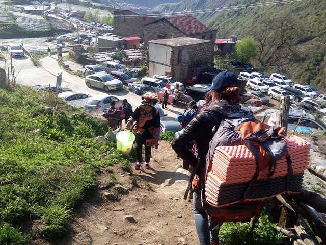 历经三个多小时才徒步到达山脚下,无奈小伙伴来了大姨妈,于是我就充当了男人的角色。整个家都在我的背上,你说沉不沉,哈哈,我说的是帐篷。终于抵达目的地,很是壮观。