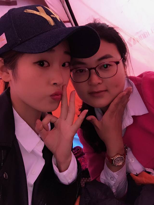 在几个小伙伴的帮忙下,新家安置成功,事实证明,有些事情确实是要男人来做的,比如说,搭帐篷。即使有点高反也不影响我们在家里美美的自拍。不过晚上才知道,有睡袋也不管用,冻成狗。