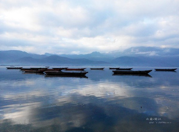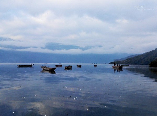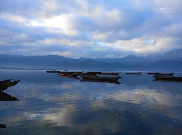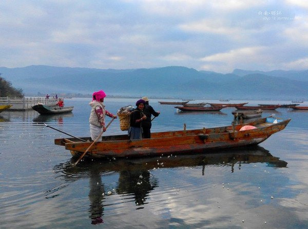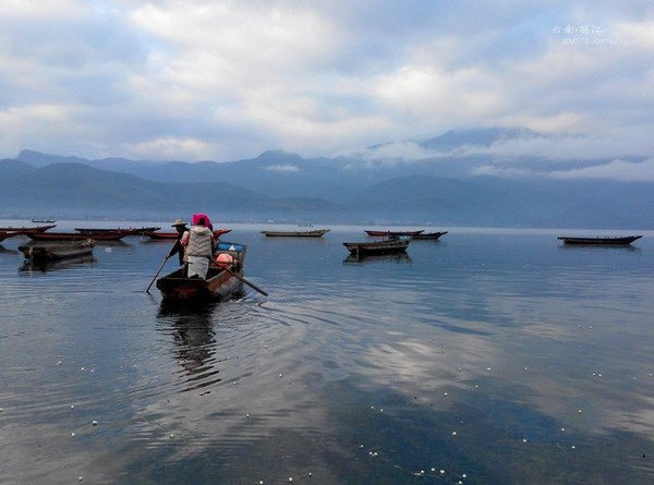 早早起来收拾行李后又是7:00左右,吃过早晨就出发游湖啦 ,客栈的位置可以看日出,也好可惜啦,天气不怎么好,什么也没看到。