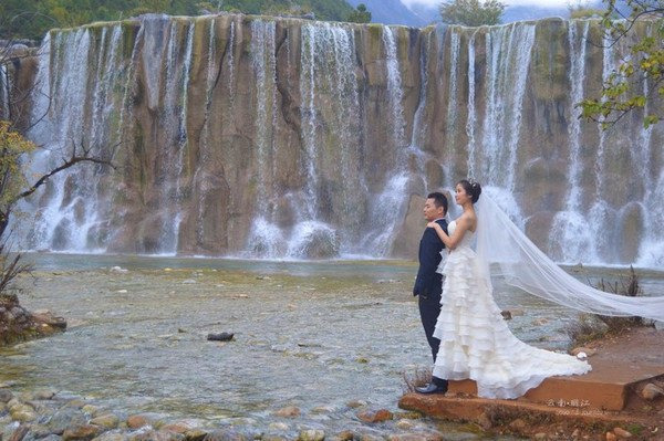 蓝月谷超美哒,拍婚纱照的人也很多,美丽冻人耶O(∩_∩)O~~