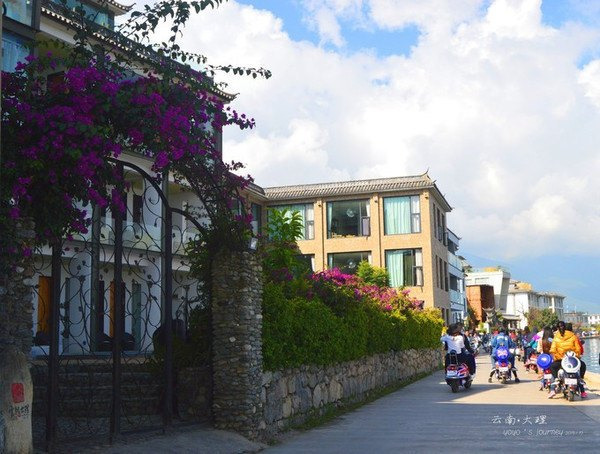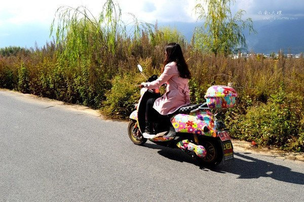(大理古城南门) 租个电瓶车游洱海,我是不会骑电瓶车,Bellamy会开车不会电瓶车,在老板的指导下了学了20分钟新手上路还带着我,把我的安全都交给Bellamy了,把她紧张的呀(*^__^*) 在南门这边租个电瓶只要30/辆,晚上21:00多要还,下午是要去火车站去(丽江) ,所以不担心要晚上还车的问题。