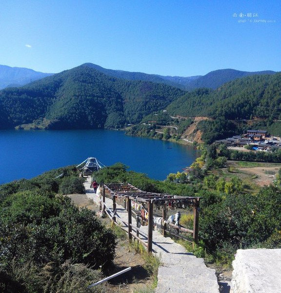 从(丽江) 古城7:00出发,过景区买票是12.30点左右,门票是100元(当然这个门票是一件包含在我们的费用里了),算了下时间大概5个小时,到泸沽湖客栈休息了一会我们就开始环湖了