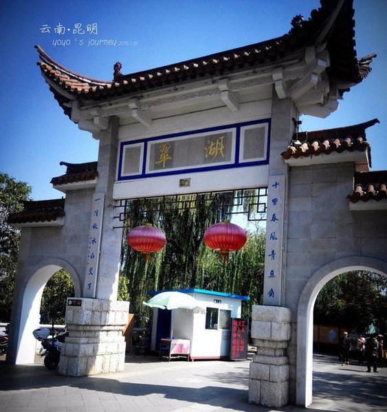 从昆明站出来坐公交车到滇池,如果时间不长的真的不建议去, 太远了呢,还很难坐车,简直有点受罪,没怎么看就去翠湖公园了,从滇池到翠湖的士是36元,很遗憾的也没看到海鸥,直接从翠湖公园到云大,随便逛逛就直接奔桥香园吃传说中的过桥米线了,吃完午餐坐公交车到火车站,再从火车站坐机场大巴25/人奔机场,路上遇到塞车现象把Bellamy急坏了,还好没有塞很长时间,总体来说昆明觉得没什么好逛的,留多点时间去机场吧。