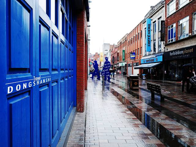文化和艺术兴盛的城市,涂鸦固然是必不可少。在漫无目的地乱走,路过一面面很有意思的墙。Grafton Street是一长面以黑化爱丽丝漫游仙境的主题涂鸦,可以看到如兔女郎装扮的爱丽丝和夸张的棋盘涂鸦。路过那里的时候还遇见当地油管儿(YouTube)博主在这面墙前录制新的节目。很适合爱拍照的孩子来玩啦,真的可以拍个几百张街拍呐。哈哈。