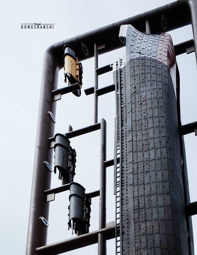 这里重现了当时制造泰坦尼克号的过程中,安全措施简陋,但高度惊人的工程铁塔。