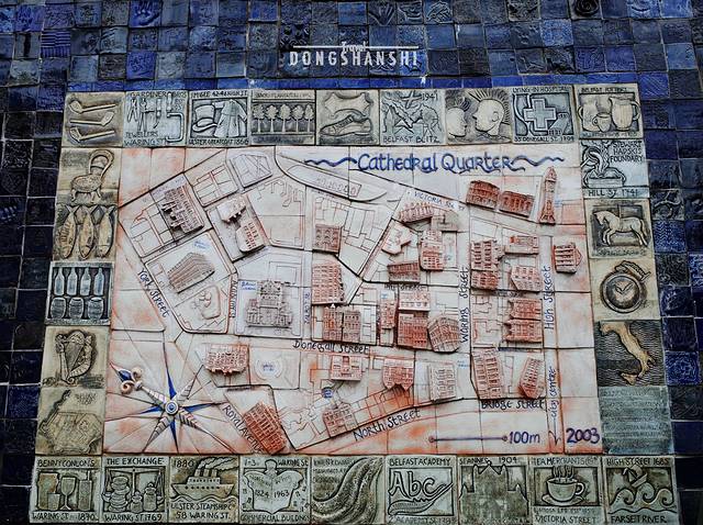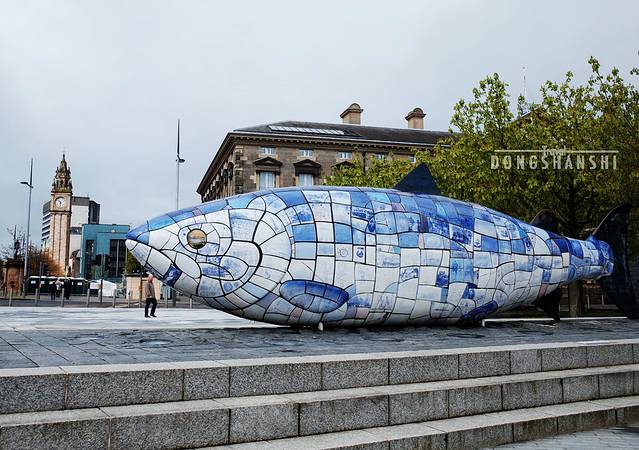 拉根河沿岸的码头与贝尔法斯特的起源息息相关。作为沿海城市,过过去货物的运输和贸易都主要依靠海运。在过去这里是兴旺繁忙的港口,随着时代发展,这里逐渐变成了垃圾处理区域。之后又经历的耗巨资修理维护这个港口,才成为现在的样子。长达十米的大鱼雕塑便是位于拉根河码头(Quays of River Lagan)由印有关于贝尔法斯特历史的报纸剪贴和图片的瓷砖装饰表面而成。