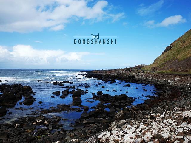 进入巨人之路(The Giant's Causeway)的景区,要通过一段步行才能到达传说中的巨人之路。在到达巨人之路之前,是一片片石滩,经过长期的风吹雨淋,这里的岩石都有着较为圆润的表面。