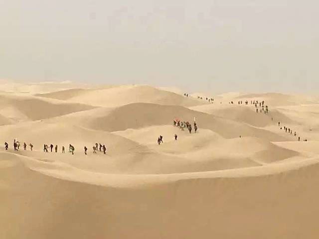 随便吃两口,兵分两路,留在车上直接去景区,另一部分徒步穿越库布其,今天强度是昨天的一倍还要多。之前说过,老人要强,少年装逼,昨天累却不说,所以今天不少人心里是打退堂鼓的,极少数年轻人留下,大部分还是选择了穿越。是啊,来都来了,灰溜溜的回去,实在是个扫兴的故事。