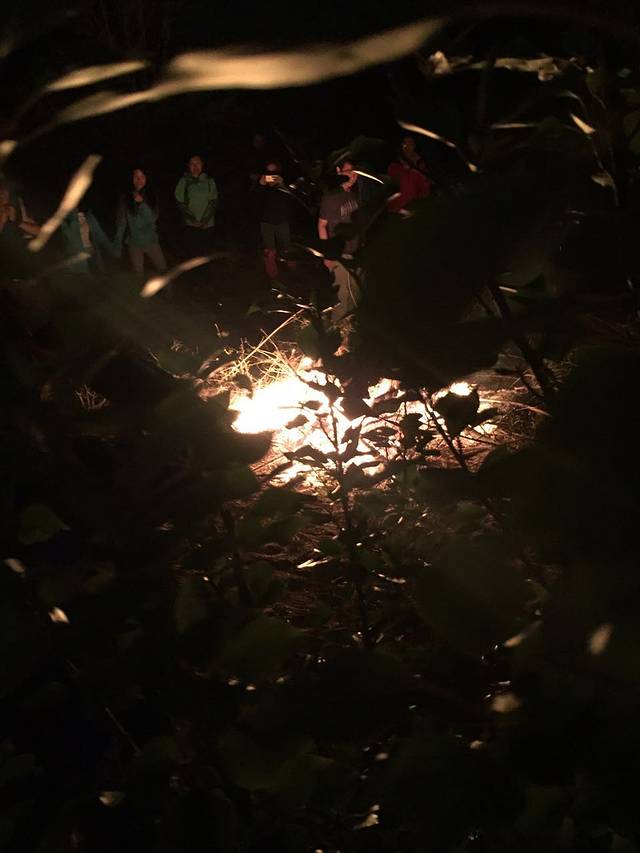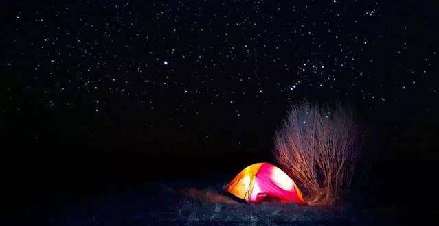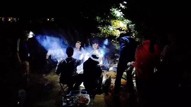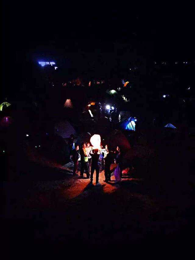 好了,天黑了,我也是接到我妈电话才知道8点多了这里天才黑。其实这时的我真的是很不舒服的,浑身是沙,脏兮兮的,营地风沙也很大,帐篷又小,又累的不行。不过,这时高潮才来,天一黑,灯都亮了起来,彩色的帐篷像夜光蘑菇,架起炉子烤肉煮火锅,猜拳喝酒;有人切着羊肉,姑娘们帮着穿串,像在家里;很多蓝牙音响都在歌唱,即便TOP100这种歌曲,听着也很温暖,可能这会让你感觉你还在文明世界里;玩杀人游戏的一个乱民说,我觉得某某的表情不自然,我看了看他们那群人,黑的几个人都看不清楚,那个可爱的乱民怎么感受面部肌肉跳动的呢;慢慢的,起了篝火,人类对火的热爱和崇拜这是骨子里带的,那一刻我整个人一下子安静下来了,隐约记得身边的小阿姨姑娘静静的站着拍着照,我坐在松软的沙子上,看着火焰发呆,也进入了自己的结界,觉得这一切都好美妙,当时做出来沙漠的决定,那是多么好的决定啊,风吹着我,我看着火,他们在跳舞,他们在唱歌,他们很快乐,我也很快乐。我像块海绵,贪婪的吸收着附近的种种欢笑嚎叫、啤酒的咕咚声,烤肉的炊烟,隔着火焰闪烁的舞姿,所有的感官都在为你挠痒,你抽一口大麻也不过如此了。