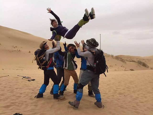 最后要记录的就是和我接触多一点的姑娘,不二、小阿姨、高冷静,她们都很美,不二很细心,第一天她负责收队,看我背了桶5L的水,质疑要倒走一些分担重量,然后第二天又执意还给我,是很讨人喜欢的东北姑娘的样子,高冷静,有自己的结界,这种姑娘就特别吸引我的注意力,我总会仔细的打量,她就会采用在沙漠可爱的上厕所模式,在第二天一直拉着云暖男的手(云暖男是个热心的小伙子,沙漠两天一直在帮助姑娘们,我没有贬义,我猜他上大学时一定是学生会主席这类同学,赌一斤牛肉),然后第二天我就酸酸叫她浮夸静,哈哈哈,酸酸是小阿姨说的:)。小阿姨,我问她年龄时她说肯定比我大,而且我开始就把她当作领队和依靠,所以就有种小阿姨的亲切,从头叫到尾,她也告诉我她的真实名字,我只记得很好听但不记得是什么了,她来自拉面省,我以为她很健谈,后来从别人口中才知道她好像挺内向,像我一样。小阿姨之后还会来郑州出差,挺好的,我还可以见到她,我下次想穿雪山,她来郑 州我请她吃碗烩面看她会不会陪我去。