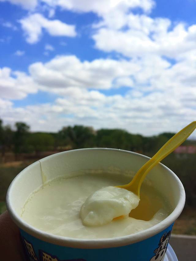 我喝酸奶是为了消食。天好蓝,配着吃。