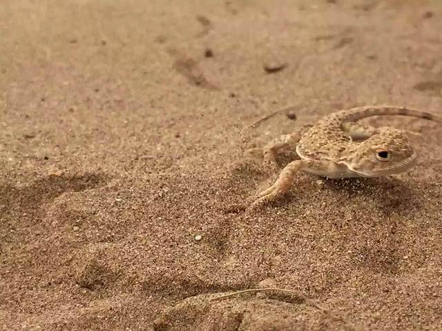 沙漠里也是有它固有的生物链,之前说过的柳坚强,还有一种像屎壳郎的甲虫,很多,还有小小的蜥蜴,比我前几天在雁荡山里见到的蜥蜴,真是让人心疼,它有又小又倔强的表情,就连路上也会有孤独一只挺立的绿色,我不知道她是什么植物,不过这本身也不重要,前面路过的驴友害怕后面有人踩到,专门画了个圈在她附近。每次出行,都会有震动你的地方,你也会有你的收获,沙漠的景观这是固有的,而那些顽强的人和物才是触动,环境当然艰苦,可他们绝不只是活着,他们都在用力的生活,生活高于活着的地方就是乐观和乐趣,沙漠里的甲虫也会和同伴追逐打闹,也会抓住草叶风中荡荡秋千。这样的人和精神,在我看来,就是可爱。
