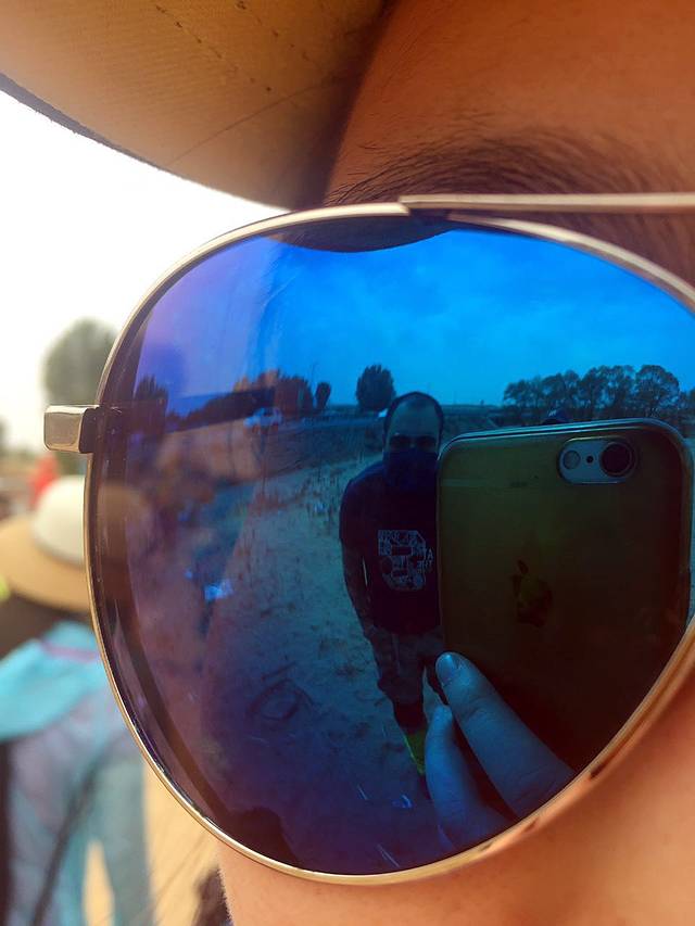 接下来的行程就是风沙继续肆虐,我看到一个带泰迪来的哥们把魔术头巾整个套在头上,真是个好主意,我也裹了起来,反正风沙大别人也没工夫看你,我觉得我那样好像一个大粽子,你看过日本综艺把丝袜套在一个胖姑娘头上往上揪丝袜的样子么,嗯对,差不多。