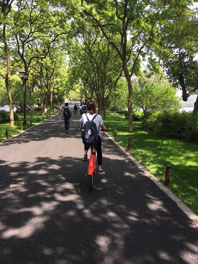 因为时间比较赶,所以我们吃完午饭就加快速度,要注意的是西湖有一段路是不给自行车进的,这个比较麻烦,只能沿着大马路踩。好不容易在两点回到办卡的那个点(因为离旅舍最近)结果那里没位置还车了,我觉得这是这个租车系统一个最大的弊端,结果我们又要踩回苏堤去还,幸亏那里有位置还,要不然我们就又要踩去其他点。还车之后我们打了个滴滴在我们回旅馆拿行李再到武林门坐机场大巴,好像是20/人四点多就到了机场~