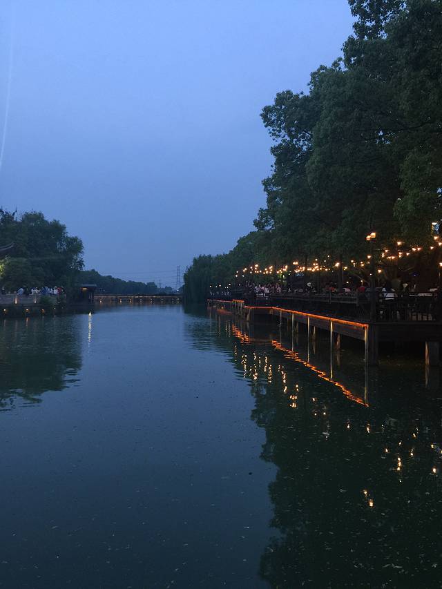 西栅比东栅大多了,由于前一天一早起床太累了,我们俩睡到10点多才起的床,随便在旁边的早餐店买了个小笼包还有豆浆就出发去西栅了.一进游客服务中心,左转进景区前的右手边有地图拿,我们也是恰巧碰到旅游团导游在喊他的团友去拿,否则真的挺容易忽略的。进去之后我们直接坐免费的船去安渡坊,然后就按照地图右下角的游程推荐来走。走到下午四点半的时候走了四分之三左右,然后就去等那个默默的家,这家餐馆很火啊,但本来位置就不多,五点开市就已经坐满,吃完六点左右,我们就没再按游程推荐上走,就去了月老庙,超级多人,然后再继续往里走。走到如意桥附近大概七点多,那边超级多酒吧,然后我们抵挡不了诱惑就选了一家进去,我们选了雨过天晴,因为恰好听到里面有在唱歌的,而且挺好挺的,小清新,我点了杯灰姑娘,sang点了玛格丽特,再点了一个水果盘,一共170.差不多九点半我们就往回走,从风雨长廊出景区,景区10点半关。