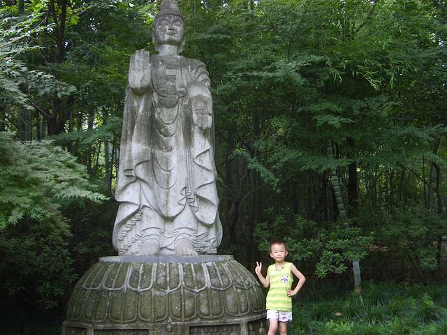 吃过早饭,退了房间,出酒店便是车站,做车去灵隐寺,在此多说一句,注意行驶方向,以免弄错,做反了,既耽误时间人也生气,看箭头和询问司机。车辆悠悠在路上奔跑,大街小巷风景一一扫过,我的心情也飞奔到了灵隐寺,临近灵隐寺时,路面顿时窄了,视野立刻变绿,大片大片绿树绿草迎面而来,车在绿树中穿行,曲折蜿蜒,绕山运行,现实版城在山中,好美的景物,好美的道路,灵隐寺非同凡响,让人大开眼界,世外桃园了。下得车来,快步迂回走进灵隐寺境地,树木苍翠,笔直笔直,树荫遮日,洒下点点光芒,蔚蓝的天空,时时来阵狂风扫过,格外清爽.一线天,在狭窄的山谷中间,仅仅仅容一个人,露出一点仅存的光线,太神奇,太霸道,太鬼斧神工,穿行在石头中间,相互追逐,相互赏尝,尽情娱乐在山水间,沿溪而上,景物越来越美,山峦越来越陡,我们的心情也是越来越开放,孩子们在溪水边玩耍戏闹,大人则休闲聊天,外国朋友则穿戴更加开放,中西文化差异是根本的.飞来峰,遥遥相望,如同远方客人到此居住,甚为情意.也闻名世外.沿山路拾级而上,登山远眺,汗水不停流淌,犹为虚脱,杭州的天气,并不热,温度不太高,但闷,湿度很高,我们真受不了,夏天在这儿简直是桑拿,受罪.走了许久,实在不行,返回吧.灵隐寺面积不大,但登山却是需要毅力和时间,永福寺,韬光寺,禅院,殿堂可以慢慢观赏,都掩映在绿树下,清凉而爽快。我们不紧不慢一路欣赏下来,看时间不早,准备出去到苏州,准备下一站行程的,可惜此地离九堡旅客中心太远,怕时间不够,只好在留宿一晚吧。